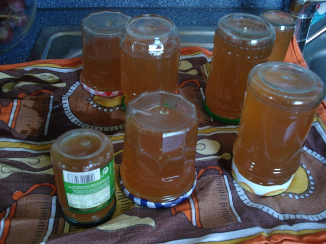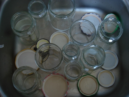 Dann sind die Gläser fertig. Am besten ist es gleich die passenden Deckel neben die Deckel zu legen, dann hat man sie gleich zur Hand und muss nicht lange rumsuchen, wenn man mit dem heißen Gelee hantiert.