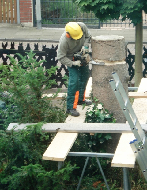 Zunächst einen Ring für den Kopf sägen, etws 40 bis 50 cm von oben gesehen.