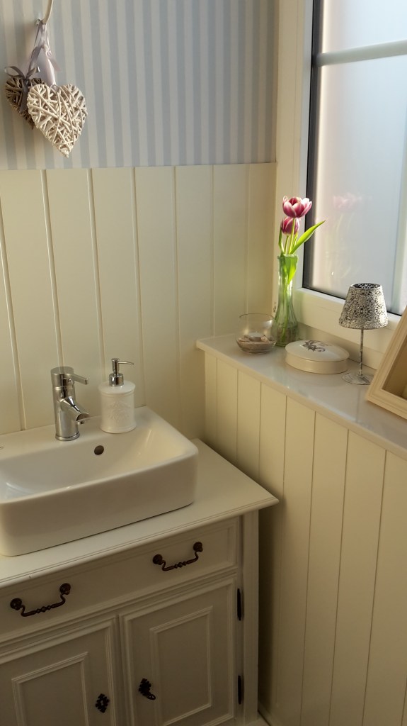 Es können auch gut nicht-maritime Deko-Objekte kombiniert werden. Alles wirkt frisch, luftig und hell.