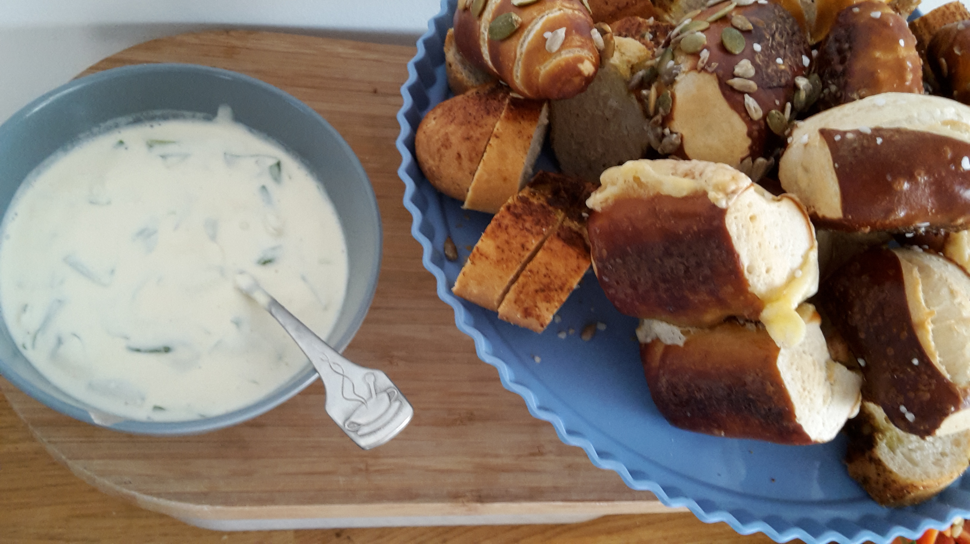 Eine Brotauswahl mit dem leckersten Dip ever: