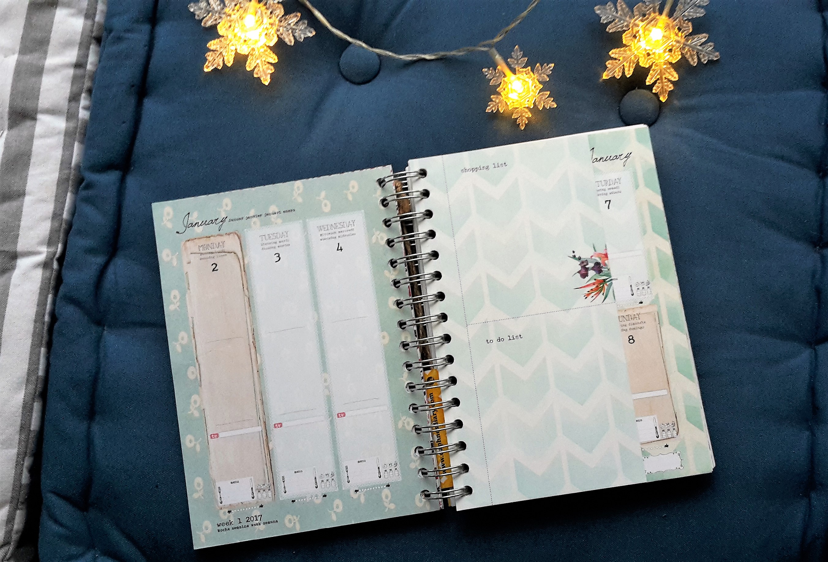 – Doppelseite für eine Woche mit Shopping und To do Liste.