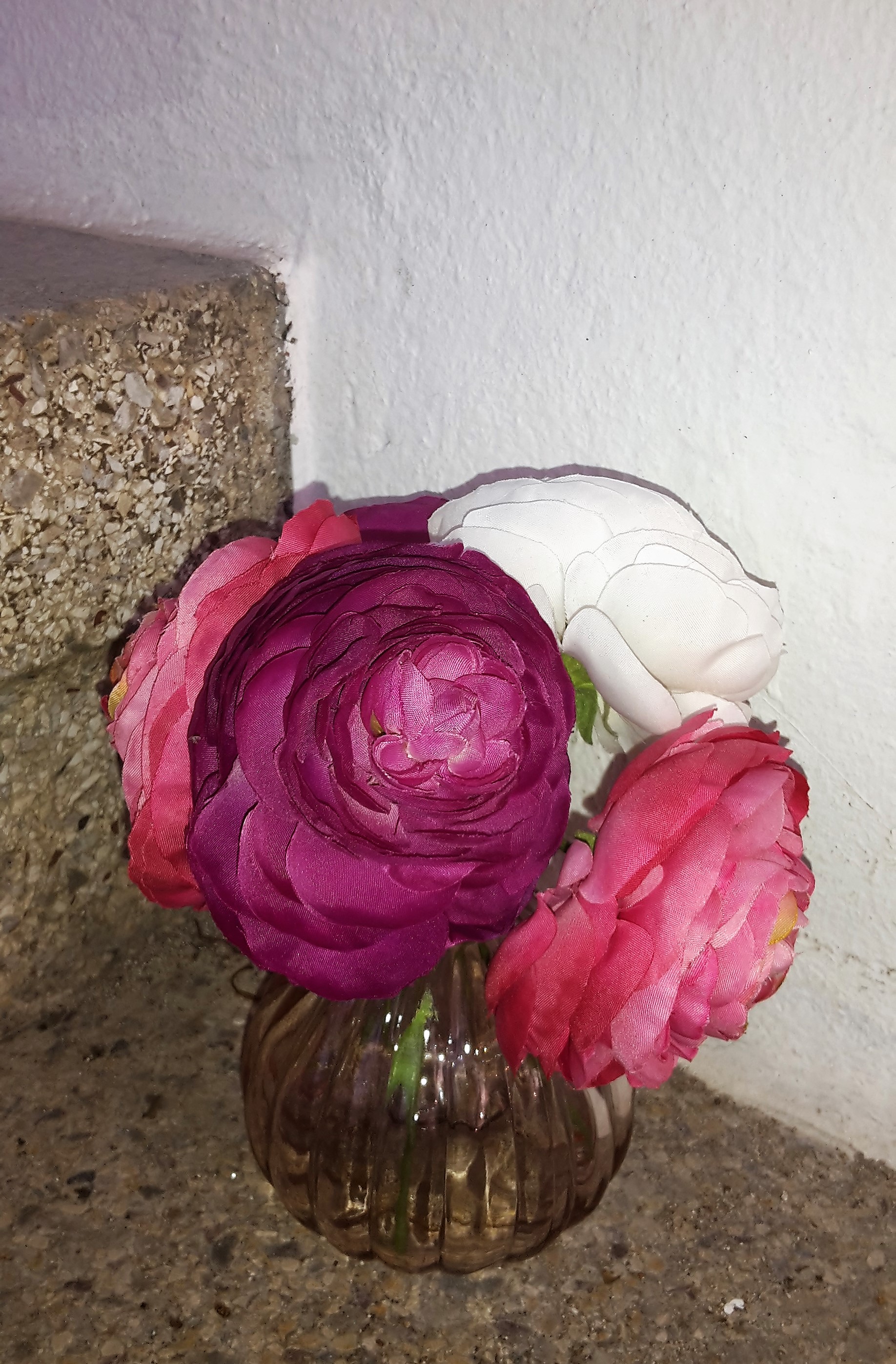 Auf die Treppe habe ich ein paar kleine künstliche Rosen von Depot gestellt, weil es für echte nachts doch noch zu kalt ist.