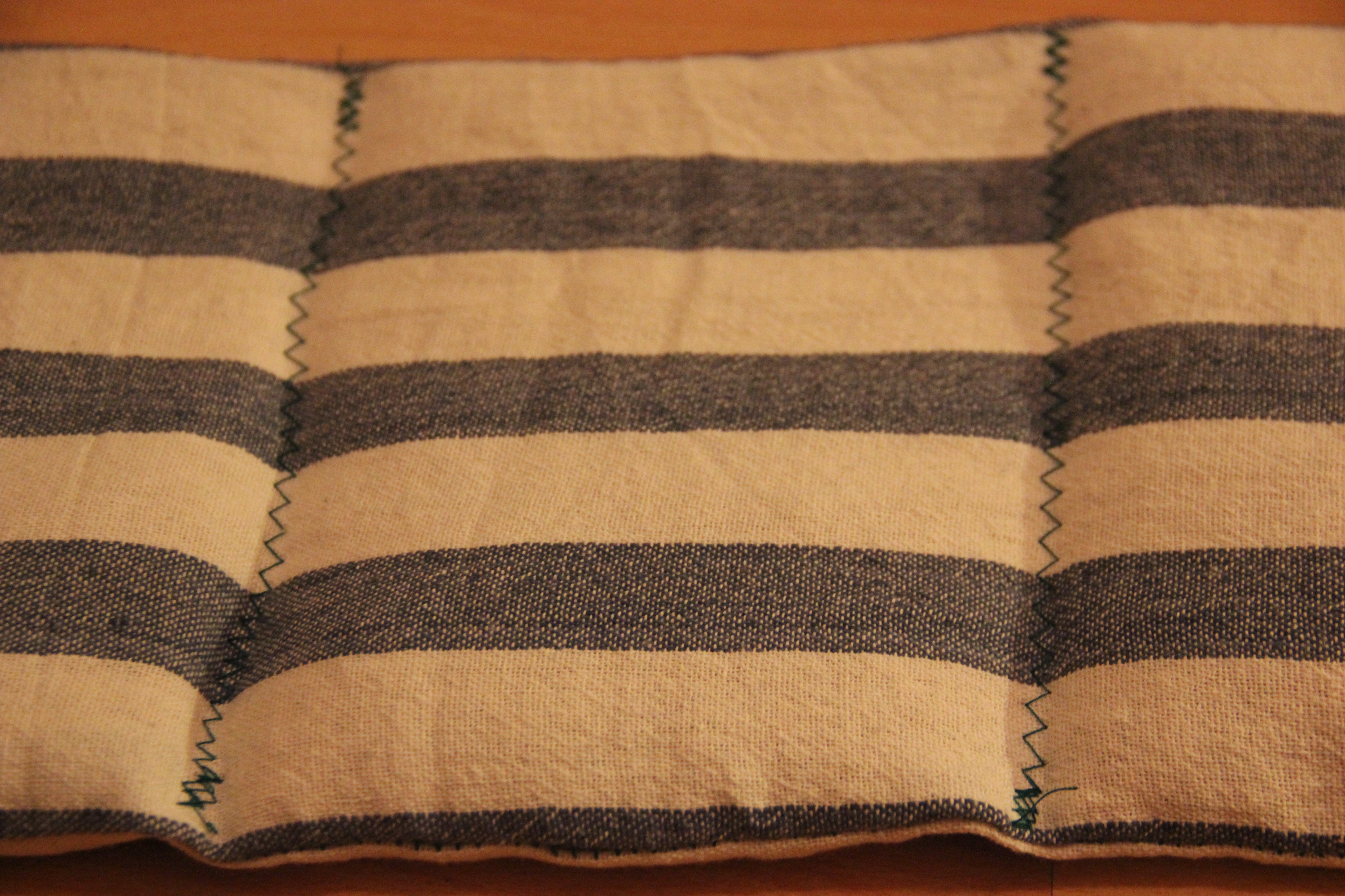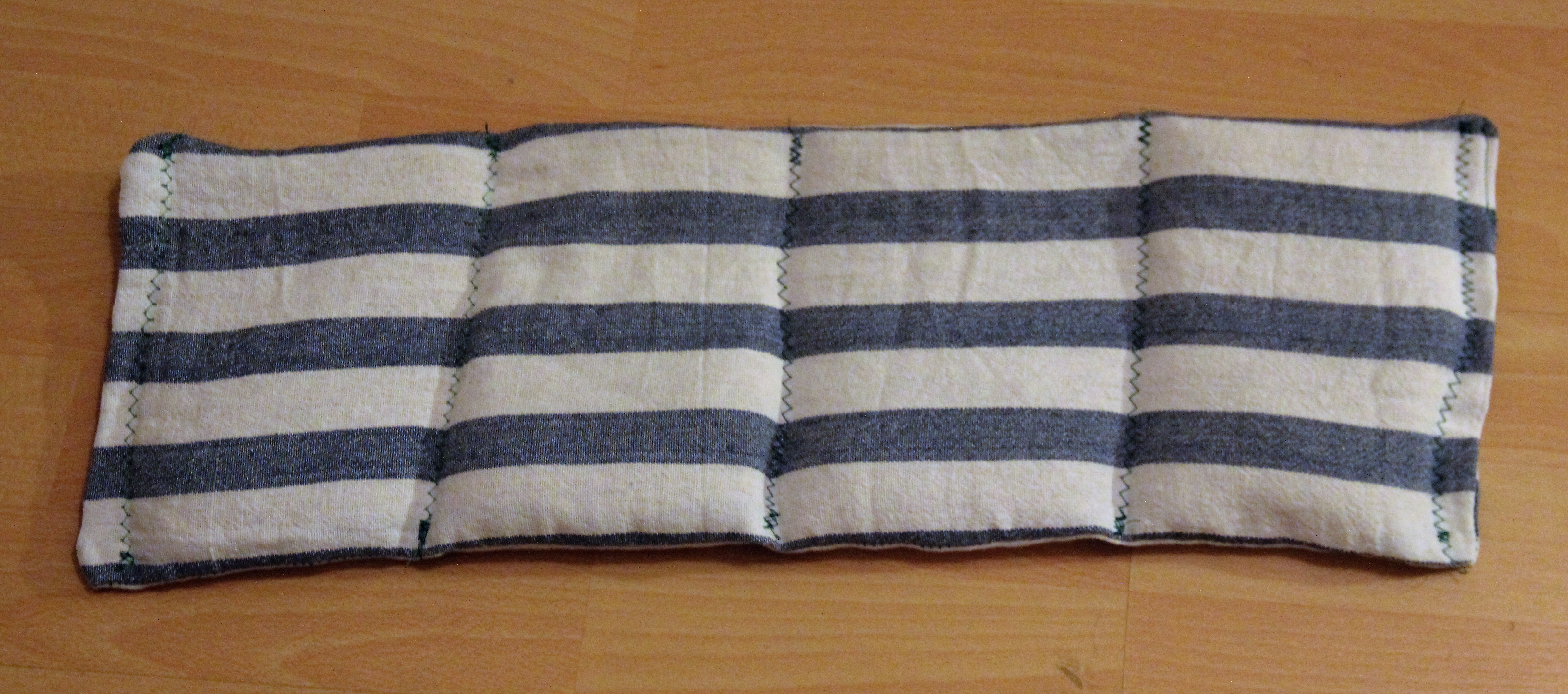 Nachdem ich die vierte und letzte Kammer befüllt hatte, habe ich das kleine Loch zugenäht und die letzte Zickzacknaht aufgenäht. Und schon war das Kissen fertig – ab in die Mikrowelle und wohlfühlen!