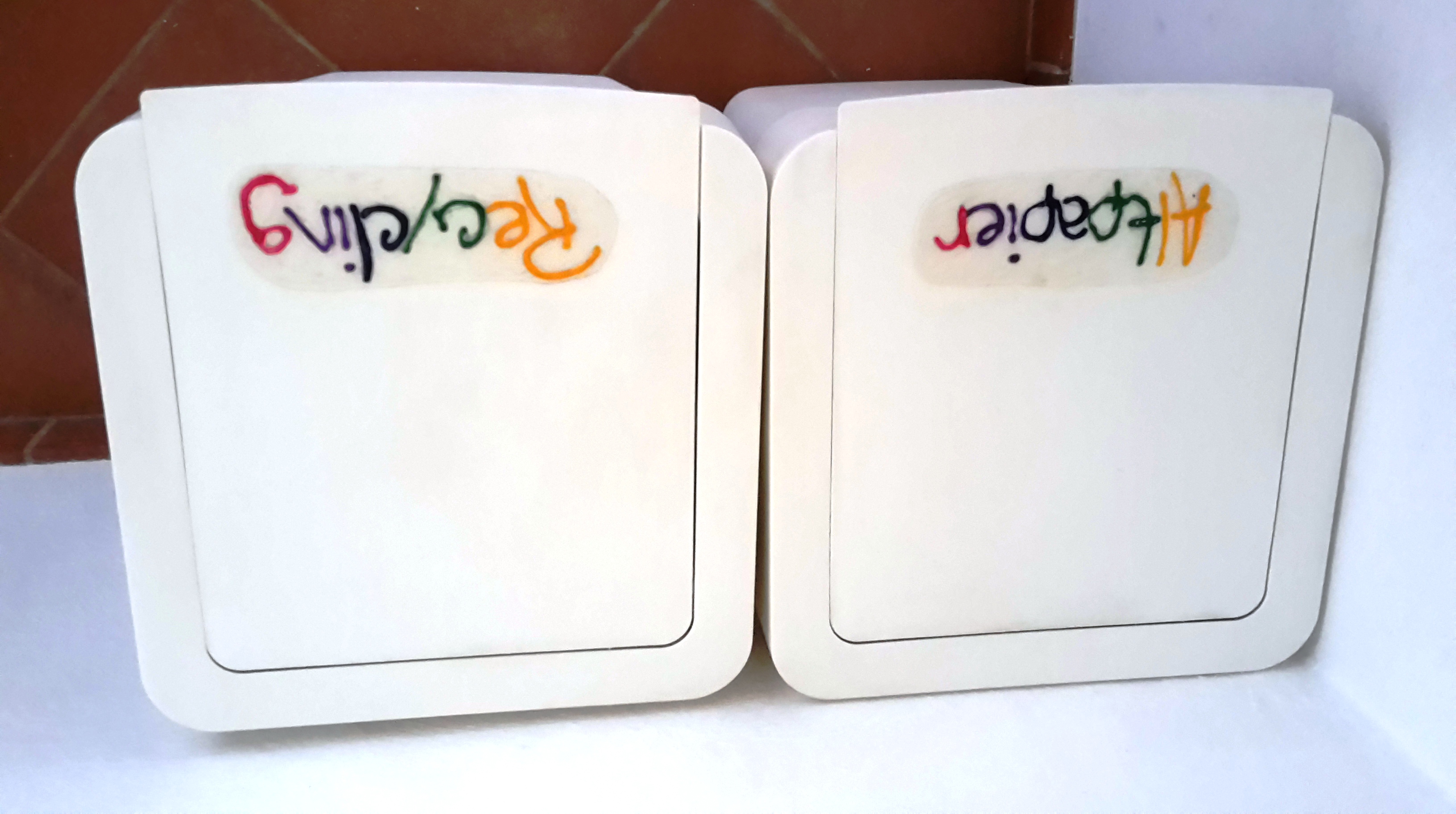 Gesagt, getan bzw. gekauft. Damit aber auch jeder weiß, wo was reinkommt habe ich mit Window-Colour die Namen draufgeschrieben. Müll1