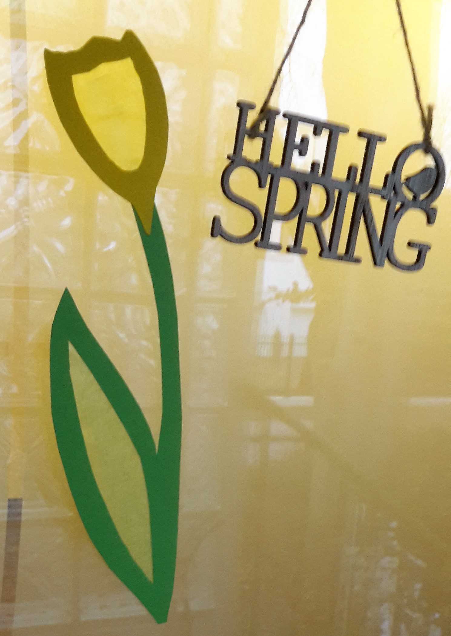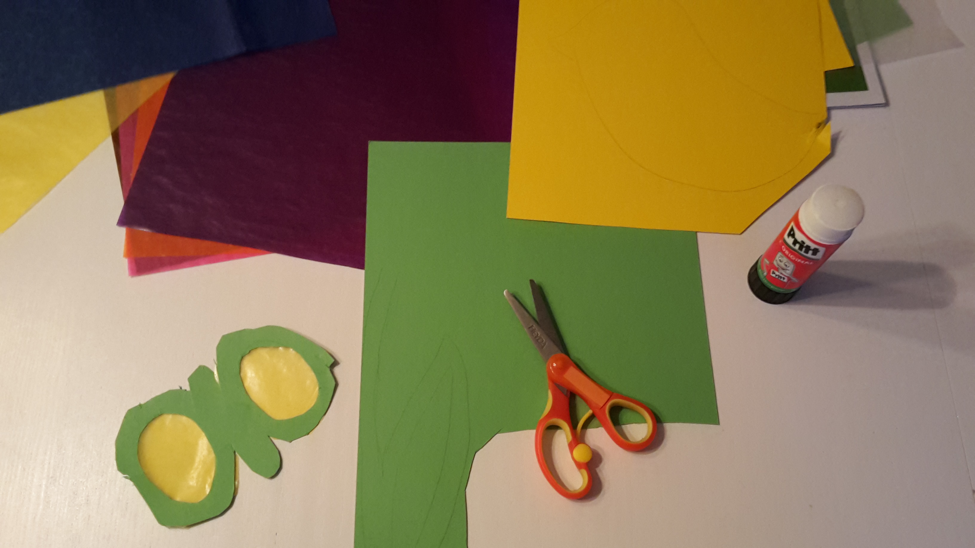 Danach habe ich die buntes Fensterpapier mit normalem Kleber an die Fenster geklebt.