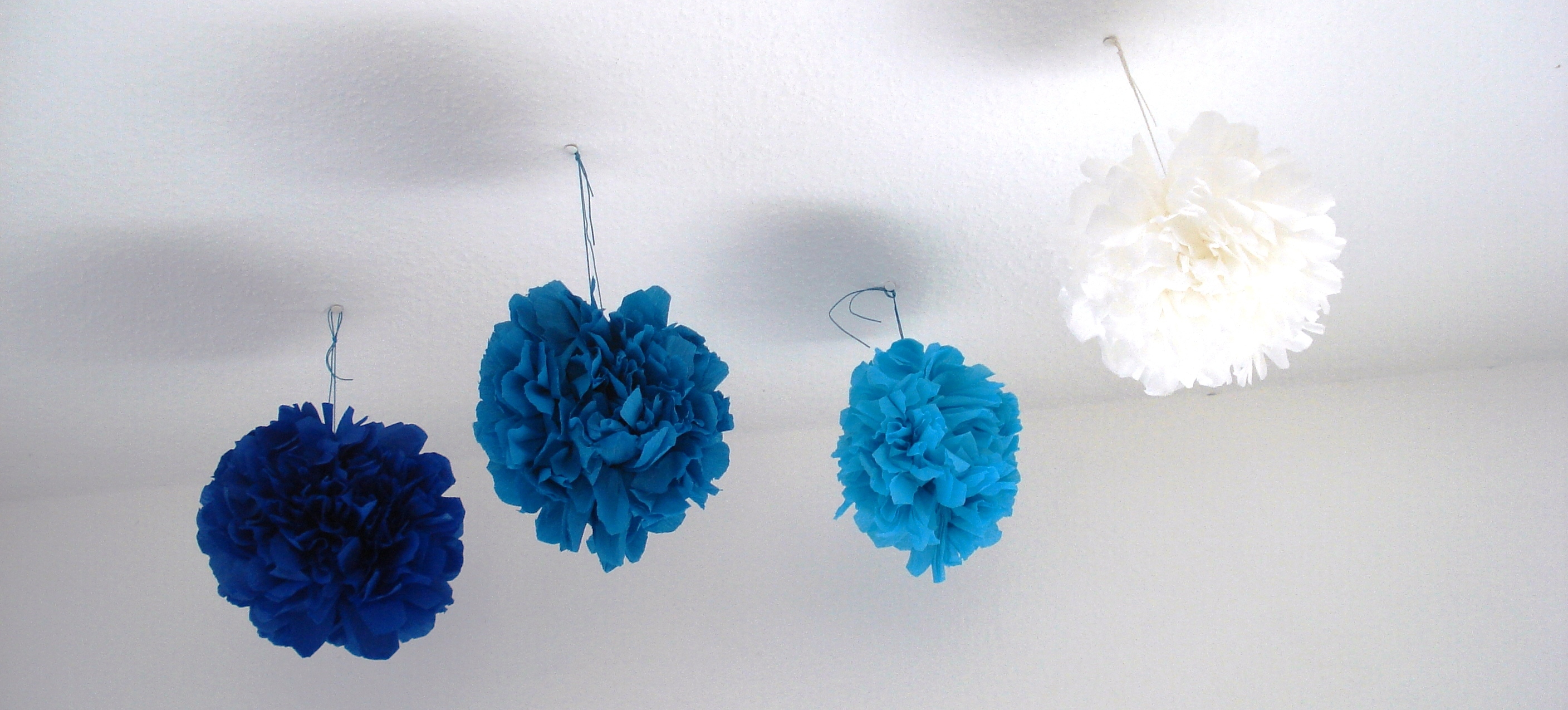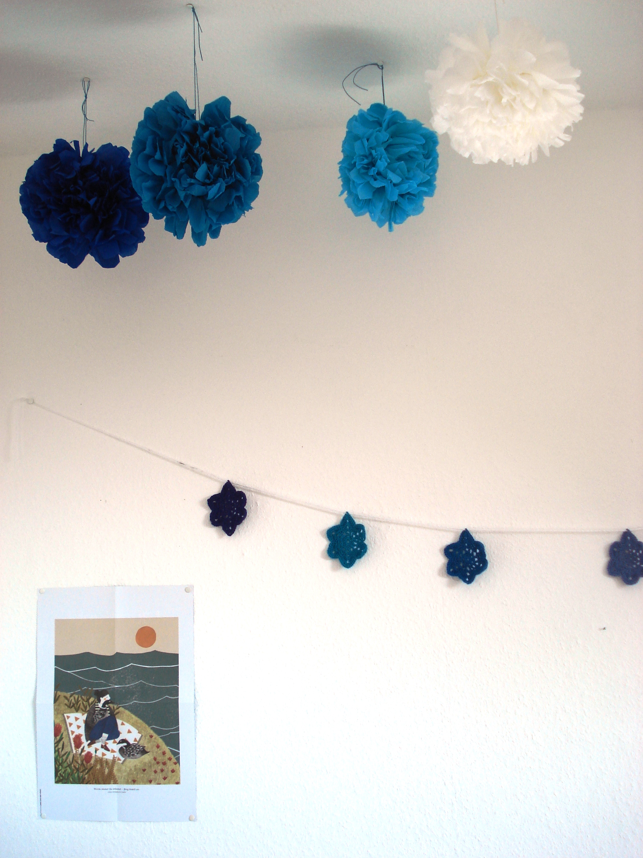 In einem anderen Zimmer habe ich dann die Pompoms in Blautönen aufgehängt.