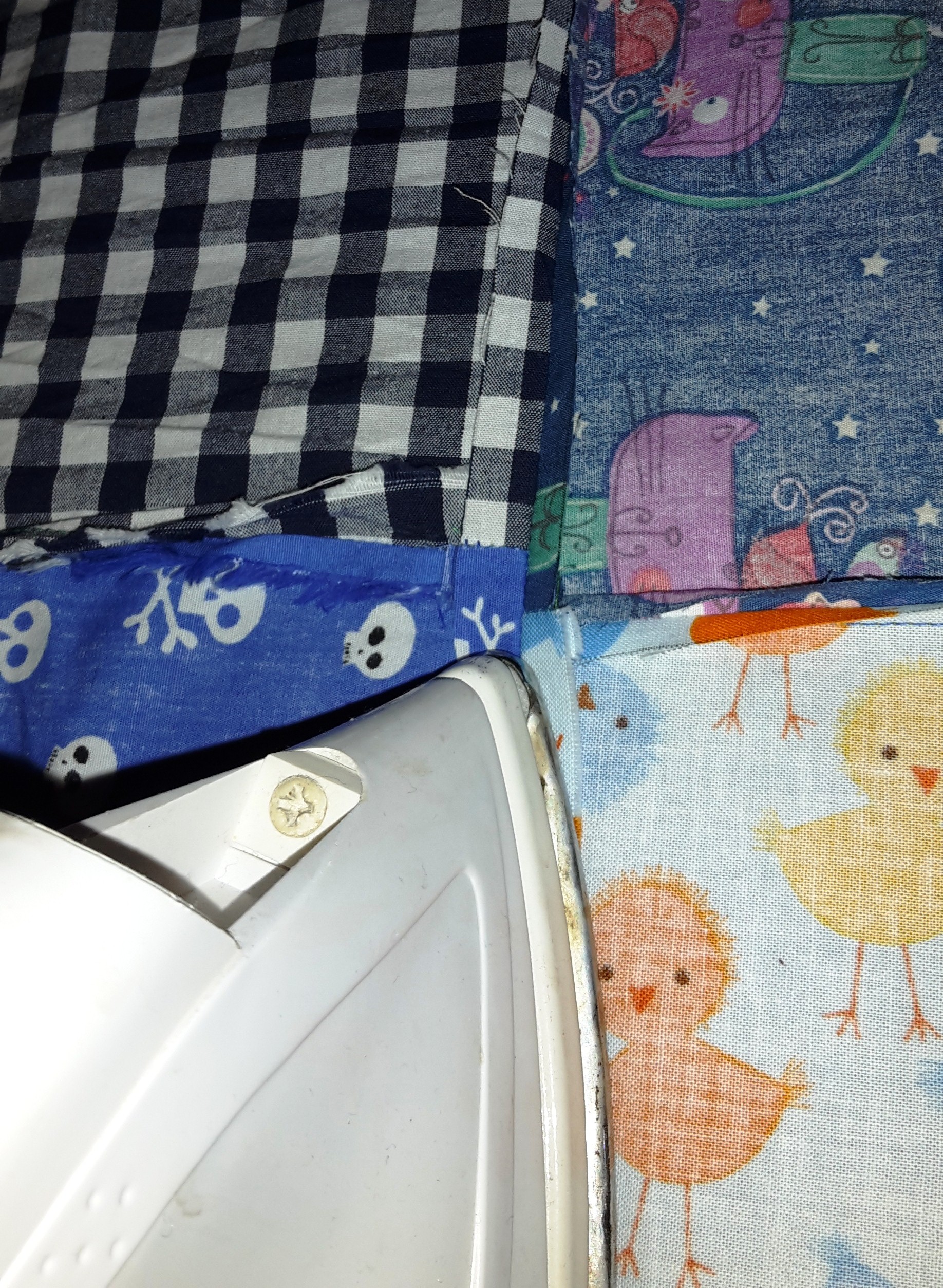Dann wird die Decke umgedreht und die Nähte auseinandergebügelt.
